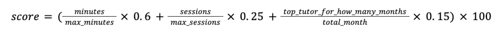 <Score calculation formula for nominating the top tutors of the quarter/year>